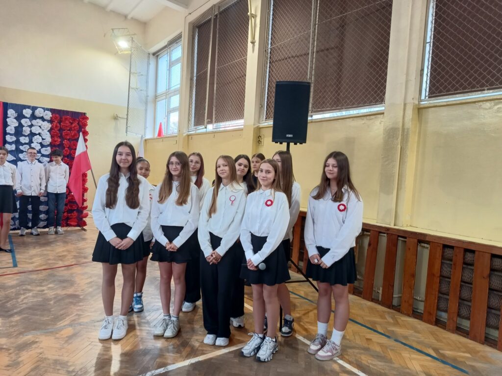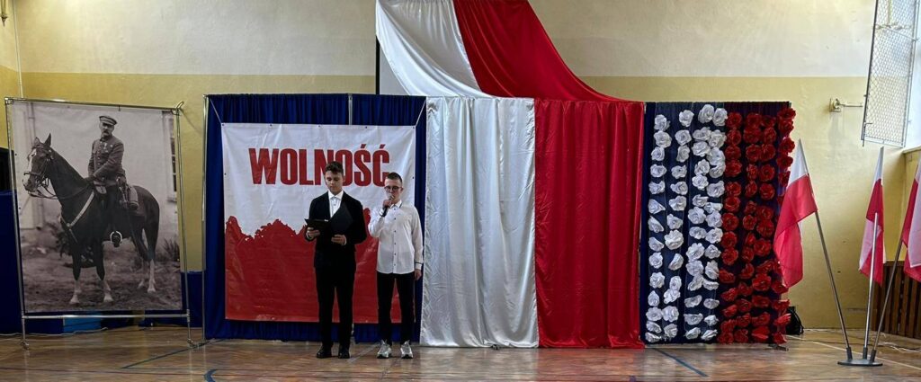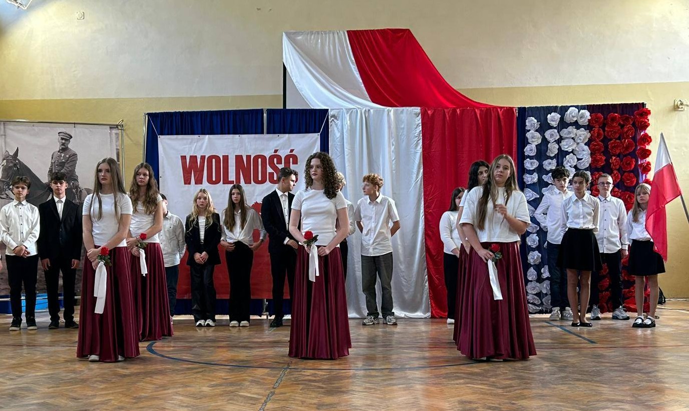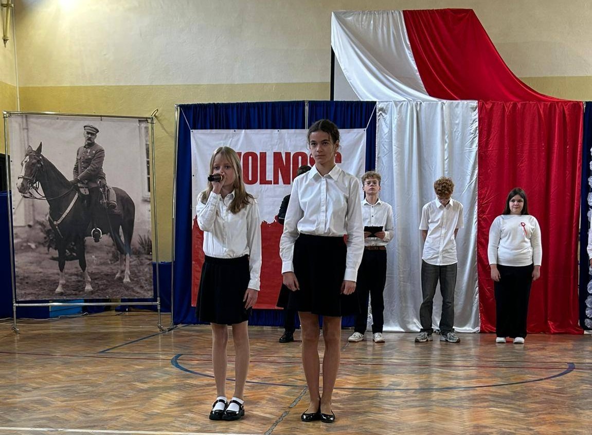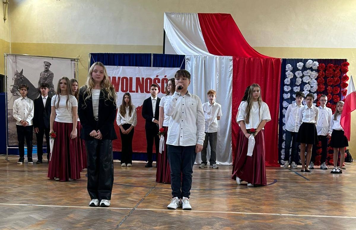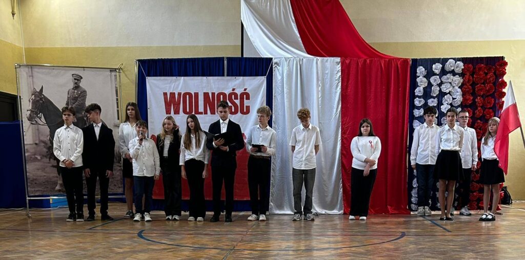 W przeddzień Święta Odzyskania Niepodległości,10 listopada, uczniowie klas starszych wzięli udział w okolicznościowej akademii zatytułowanej „Niepodległa niepokorna”. Program rozpoczęto od przypomnienia definicji pojęcia wolność. I potoczyła się opowieść o przywiązaniu Polaków do tej wartości. Przywiązaniu, które kazało wbrew rozsądkowi chwytać za broń, walczyć, protestować, aby nasza Ojczyzna była niepodległa już zawsze. W akademii wystąpili uczniowie klasy 5b, 6b, 6c, 7a, 7b, 8a i 8c. Głosem czarowała Wanessa Pierzchała przygotowana przez Panią Dorotę Szymbarę. Scenariusz wymyśliła Jadwiga Papaj, a nad dekoracją czuwała Pani Renata Polańska. Szczególne podziękowania dla pracowników obsługi: Pani Grażyny, Pana Adama i Pana Zbigniewa. Nagłośnienie Kacper Tomaszewski. Sprzęt zakupiony w ramach programu #LaboratoriaPrzyszłości