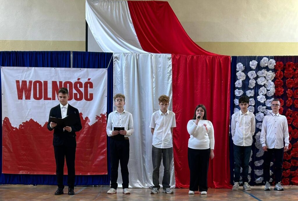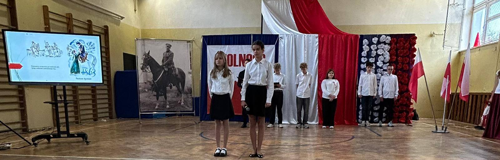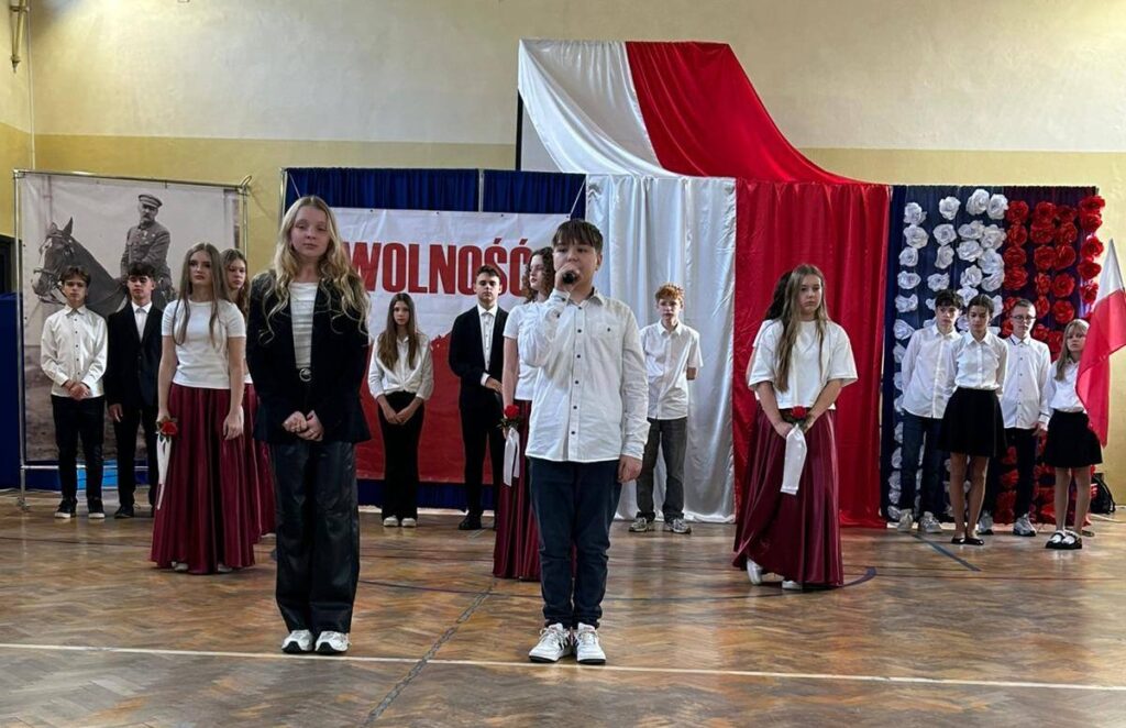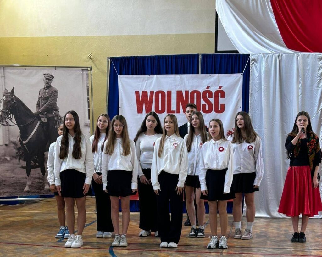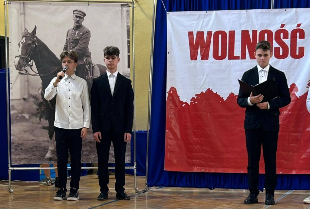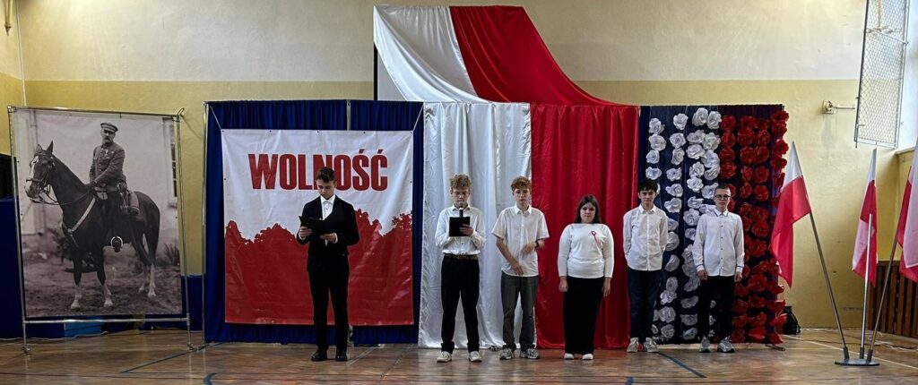 W przeddzień Święta Odzyskania Niepodległości,10 listopada, uczniowie klas starszych wzięli udział w okolicznościowej akademii zatytułowanej „Niepodległa niepokorna”. Program rozpoczęto od przypomnienia definicji pojęcia wolność. I potoczyła się opowieść o przywiązaniu Polaków do tej wartości. Przywiązaniu, które kazało wbrew rozsądkowi chwytać za broń, walczyć, protestować, aby nasza Ojczyzna była niepodległa już zawsze. W akademii wystąpili uczniowie klasy 5b, 6b, 6c, 7a, 7b, 8a i 8c. Głosem czarowała Wanessa Pierzchała przygotowana przez Panią Dorotę Szymbarę. Scenariusz wymyśliła Jadwiga Papaj, a nad dekoracją czuwała Pani Renata Polańska. Szczególne podziękowania dla pracowników obsługi: Pani Grażyny, Pana Adama i Pana Zbigniewa. Nagłośnienie Kacper Tomaszewski. Sprzęt zakupiony w ramach programu #LaboratoriaPrzyszłości