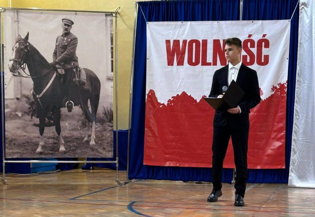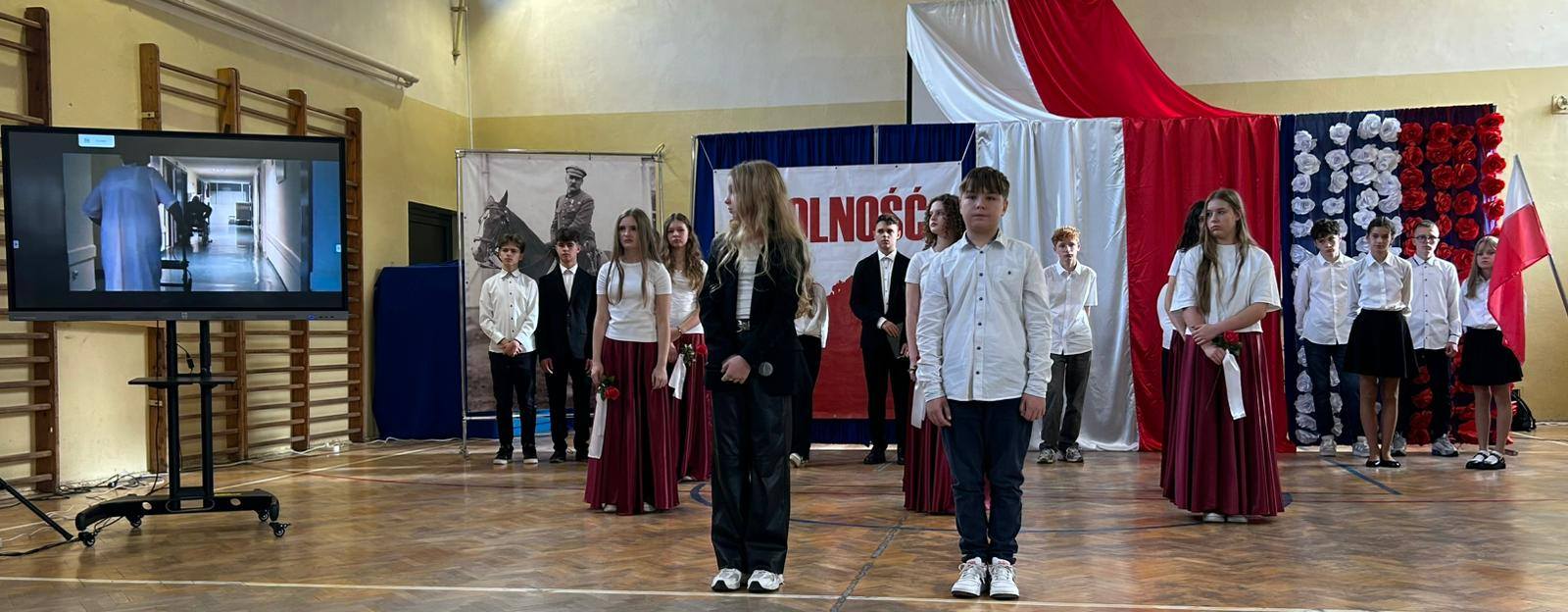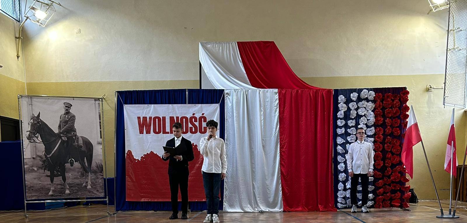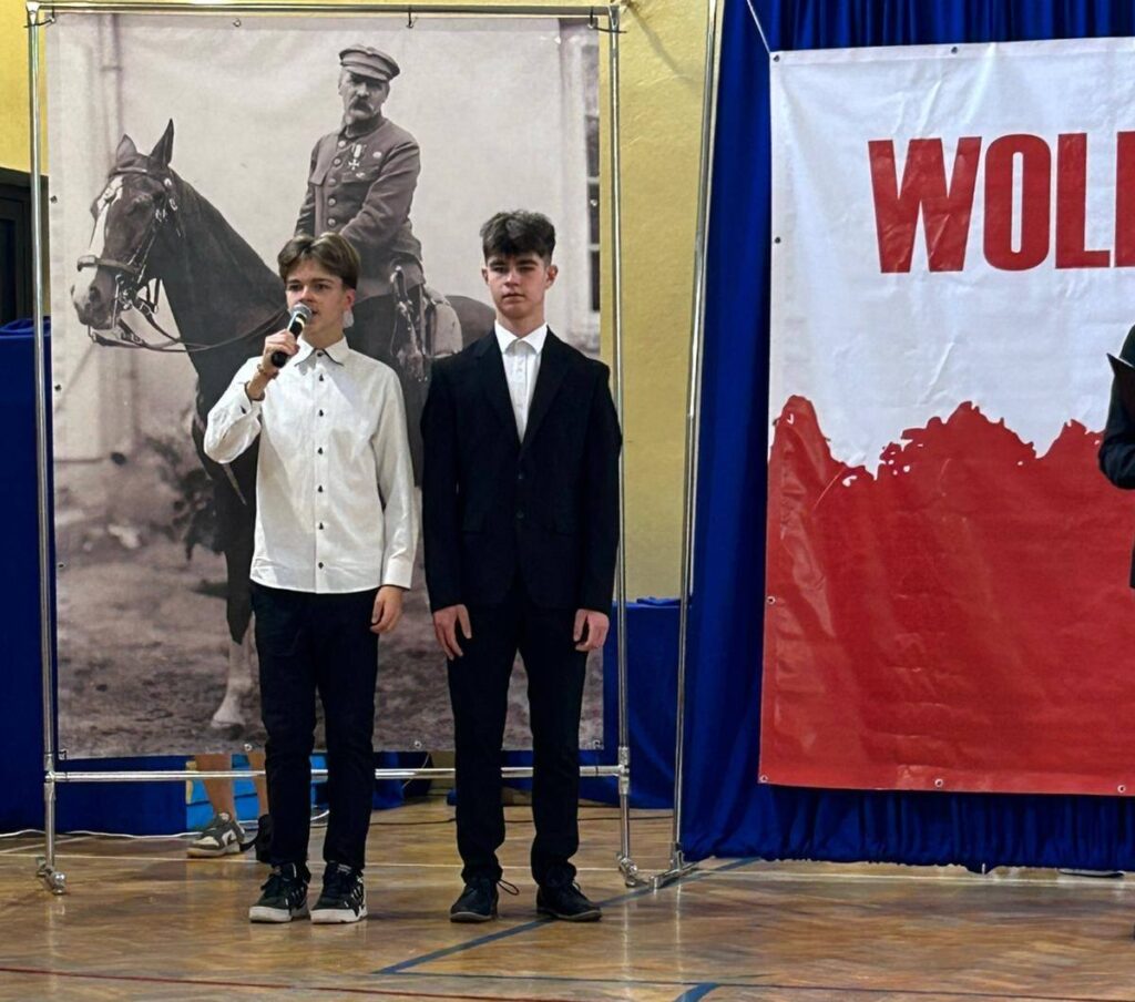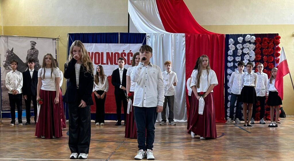 W przeddzień Święta Odzyskania Niepodległości,10 listopada, uczniowie klas starszych wzięli udział w okolicznościowej akademii zatytułowanej „Niepodległa niepokorna”. Program rozpoczęto od przypomnienia definicji pojęcia wolność. I potoczyła się opowieść o przywiązaniu Polaków do tej wartości. Przywiązaniu, które kazało wbrew rozsądkowi chwytać za broń, walczyć, protestować, aby nasza Ojczyzna była niepodległa już zawsze. W akademii wystąpili uczniowie klasy 5b, 6b, 6c, 7a, 7b, 8a i 8c. Głosem czarowała Wanessa Pierzchała przygotowana przez Panią Dorotę Szymbarę. Scenariusz wymyśliła Jadwiga Papaj, a nad dekoracją czuwała Pani Renata Polańska. Szczególne podziękowania dla pracowników obsługi: Pani Grażyny, Pana Adama i Pana Zbigniewa. Nagłośnienie Kacper Tomaszewski. Sprzęt zakupiony w ramach programu #LaboratoriaPrzyszłości